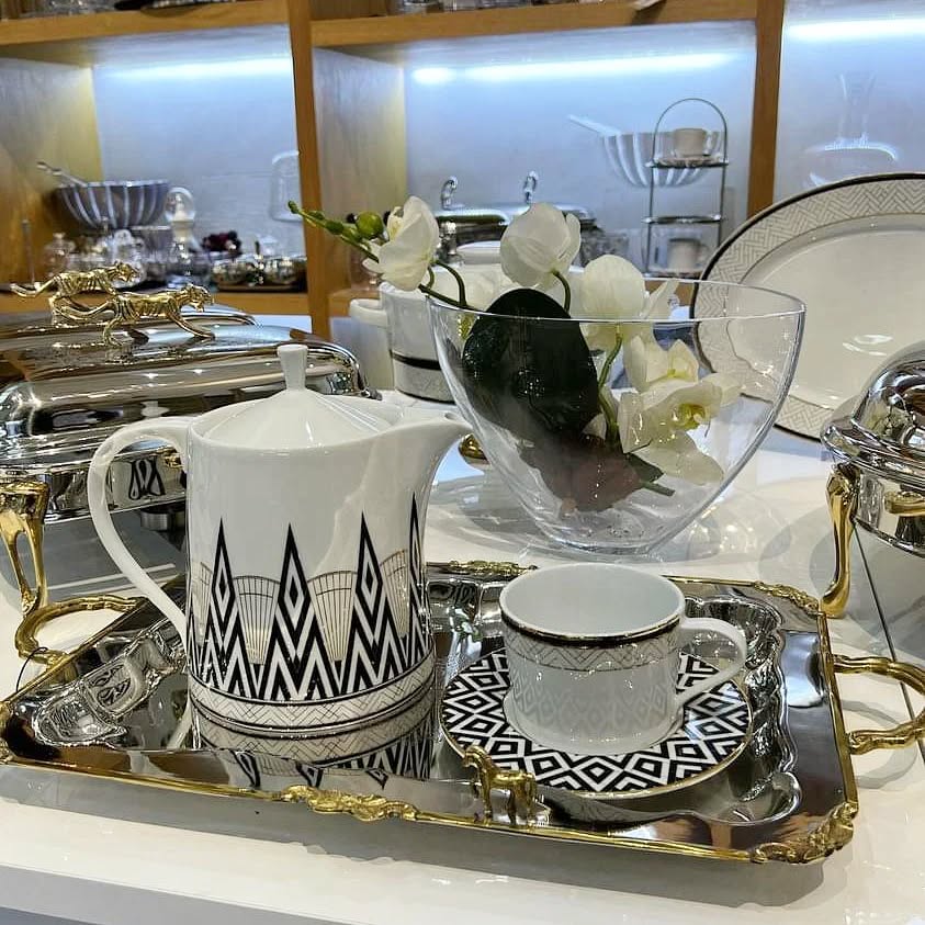 Pensé pour sublimer les grandes tablées, cet ensemble raffiné allie l’élégance contemporaine à la tradition artisanale européenne, offrant un équilibre parfait entre esthétique et fonctionnalité. Chaque pièce reflète l’attention minutieuse portée aux détails, la finesse des matériaux, et le prestige de la haute porcelaine.